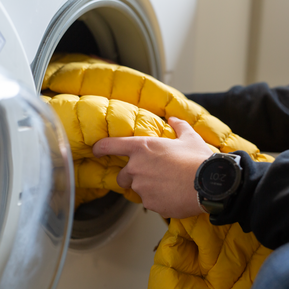Add one garment into the washing machine. Avoid overfilling your drum, technical garments need to move freely to make the most of both mechanical and chemical cleaning.