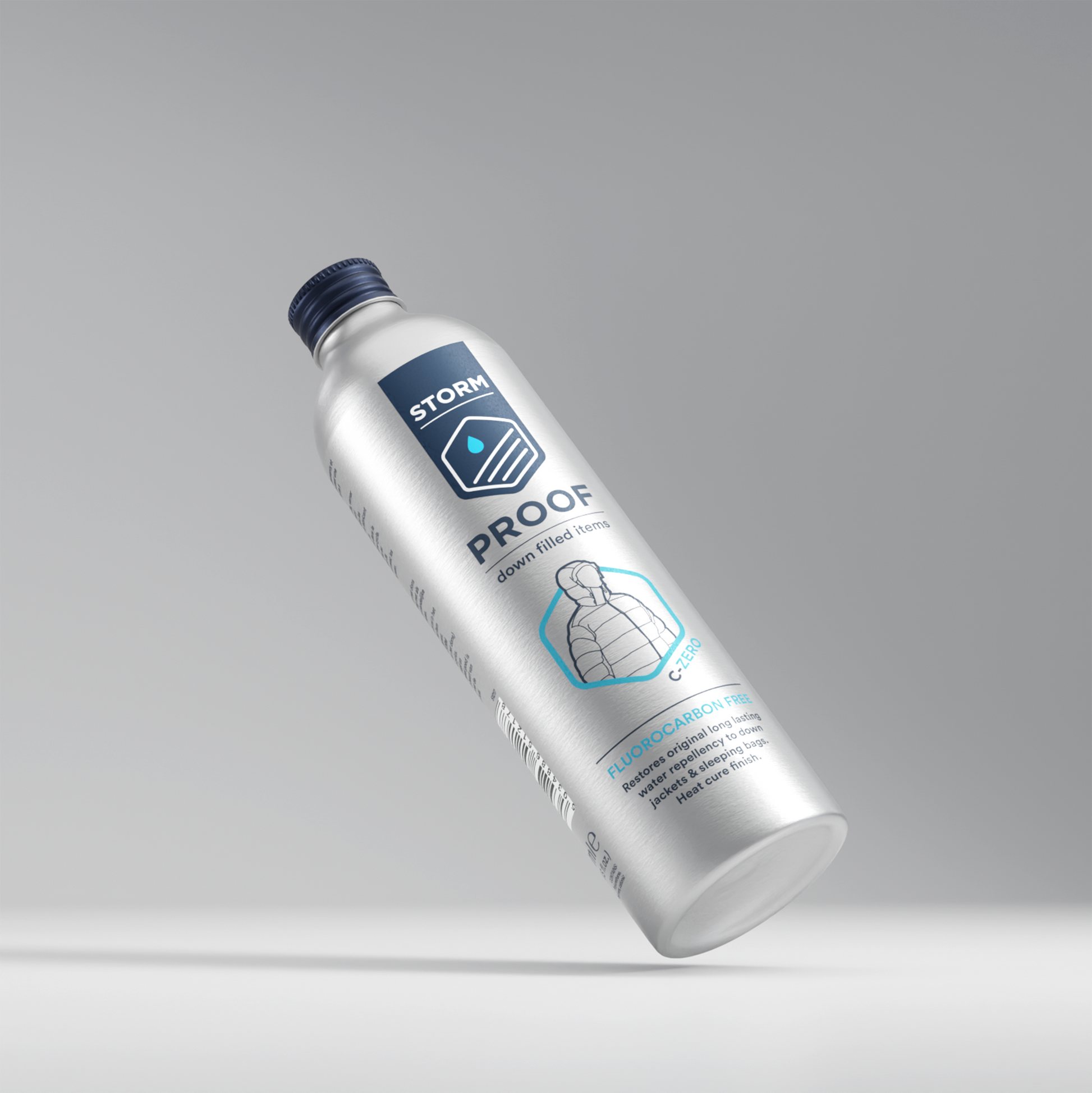 Wet down is worse than no down. When wet, down loses loft, warmth and breathability properties. Storm Down Proofer restores water repellency to down filled garments, leaving a patented abrasion resistance finish without causing damage to the delicate down material.
