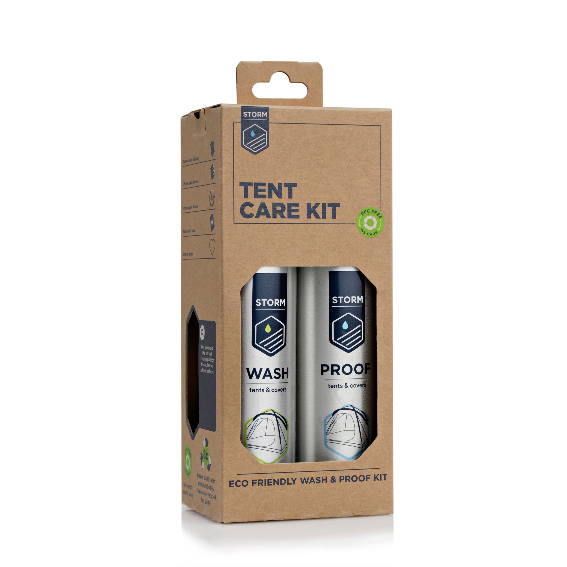 Within this kit you get all you need to care for your tent, Ideally designed for smaller expedition size tents (2man). Tent Wash, Tent Proof, Non-Scratch Sponge, Tear-Aid pack and a handy card to help remove bird dirt or tree sap and flip round to help apply Tear-Aid.